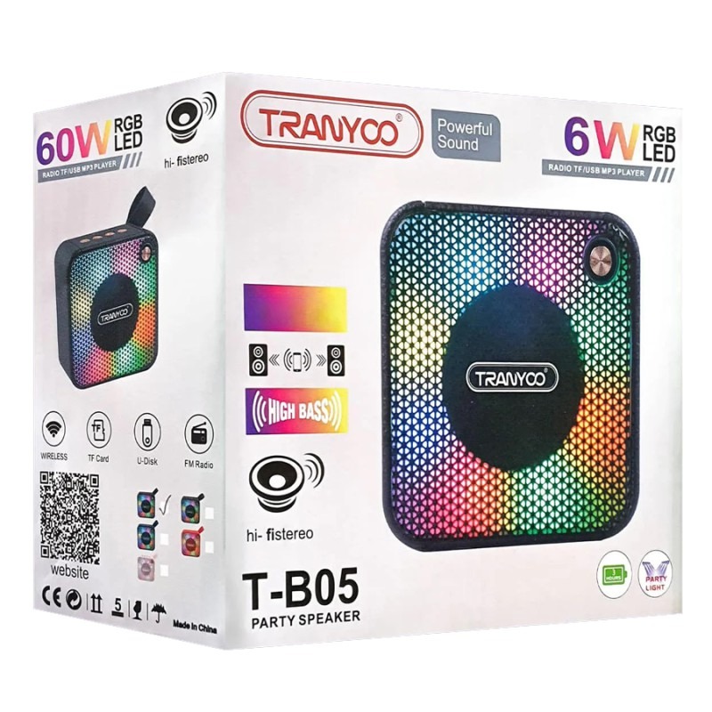 اسپیکر ترانیو B05 یک اسپیکر قدرتمند و با کیفیت است که به دلیل طراحی جمع وجور و سبک خود محبوبیت زیادی در بین کاربران پیدا کرده است. با وجود ظاهر زیبا و مدرن و همچنین وزن 290 گرمی آن، امکان حمل آسان این اسپیکر پرتابل را فراهم میکند. اسپیکر قابل حمل ترانیو با پشتیبانی از بلوتوث 5.2 اتصال پایداری را برای شما به ارمغان میآورد. همچنین برد مفید این اسپیکر برای اتصال تا 10 متر میباشد. در جلوی اسپیکر پرتابل ترانیو مدل B05 حلقه نوری جلوههای بصری زیبا و هیجان انگیز را در محیط اطراف به نمایش میگذارد. این اسپیکر پرتابل و قابل حمل قابلیت پخش تا 10 ساعت را به طور پیوسته دارد. این اسپیکر بر خلاف اندازه کوچک خود 51*98*100میلی متر دارای صدای بسیار شفاف میباشد. صدای قدرتمند و با کیفیت این اسپیکر علاوه بر گوش دادن شخصی امکان استفاده در میهمانی ها و دورهمی ها و استفاده در خارج از منزل را فراهم میکند. این اسپیکر قدرتمند و البته کوچک از فرکانس پاسخگویی 100 هرتز تا 20 کیلو هرتز پشتیبانی میکند. با پوشش وسیع این محدوده فرکانسی کیفیت صدا و تجربه لذت بخش گوش دادن به صداهای پخش شده را برای شما به ارمغان میآورد.