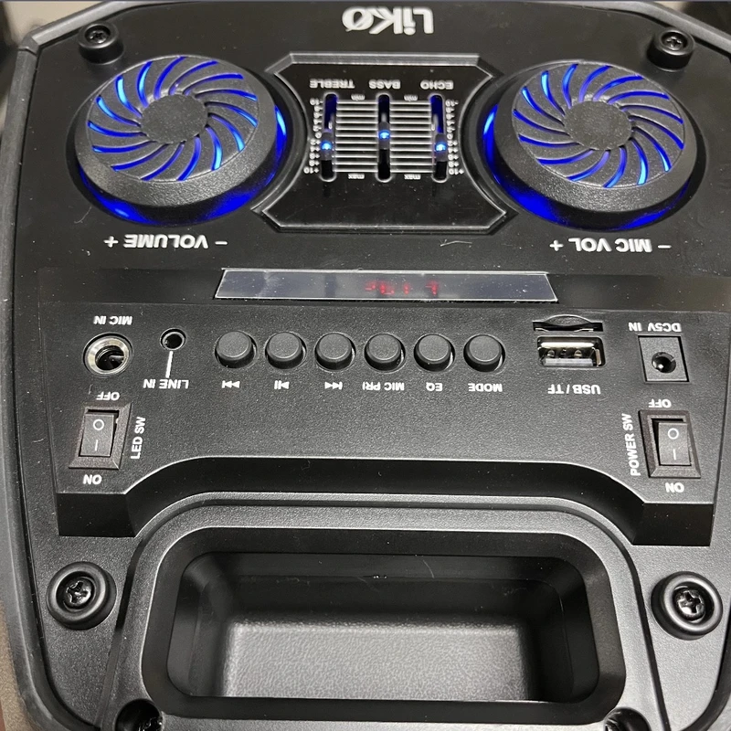 مجهز به نورپردازی داخلی، بدنه خوش ساخت از جنس پلاستیک با کیفیت، اتصال بی سیم توسط بلوتوث با برد ۱۰ متری امکان پشتیبانی از رادیو FM، دارای نمایشگر LED و کلیدهای فیزیکی متعدد به منظور مدیریت موسیقی، تغییر Mode و … امکان اتصال با سیم از طریق رابط جک ۳٫۵ میلی متری صدا، با پشتیبانی از فلش مموری و کارت حافظه جهت پخش موسیقی بهره مندی از ورودی میکروفن، توان واقعی (RMS) برابر با ۸ وات، همراه با میکروفون و ریموت کنترل برای انجام تنظیمات مختلف بهره مندی از توئیتر و دو عدد ووفر ۶٫۵ اینچ، تامین انرژی از طریق باتری داخلی لیتیومی با ظرفیت ۳۶۰۰ میلی آمپر ساعت و امکان شارژ مجدد میزان شارژدهی باتری حدود ۲ ساعت و ۵ دقیقه با حجم صدای ۱۰۰%، مدت زمان شارژ حدود ۶ الی ۸ ساعت توسط پورت سوزنی با ولتاژ ۵ ولت DC