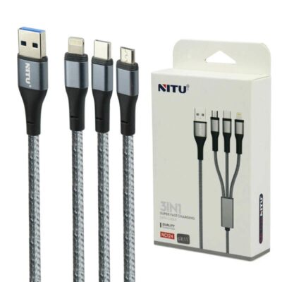 کابل چند سر نیتو با مدل NC206B که دارای خروجی های شارژ میکرو ، تایپسی و لایتنینگ بوده و دارای یک روکش کنفی برای مقاومت بیشتر این کابل در برابر کشش و پوسیدگی است و از تولیدات برند محبوب Nitu نیز میباشد. از ویژگی جالب توجه و خوب این کابل Nitu NC206C دارا بودن قابلیت فست شارژ میباشد که میتوانید دستگاه های موبایل خود را که از شارژ سریع پشتیبانی میکنند توسط این کابل شارژ نمایید.